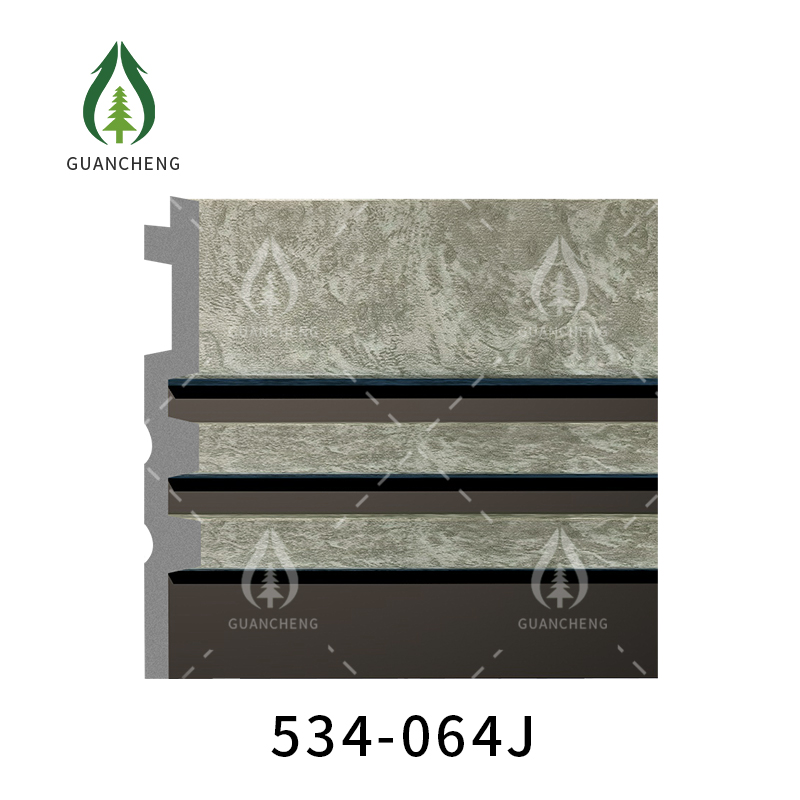 High Quality Customized Modern 3d Gold Line Luxury Design Waterproof Fluted Wood Slat Ps Interior Wall Panel For Indoor Decor